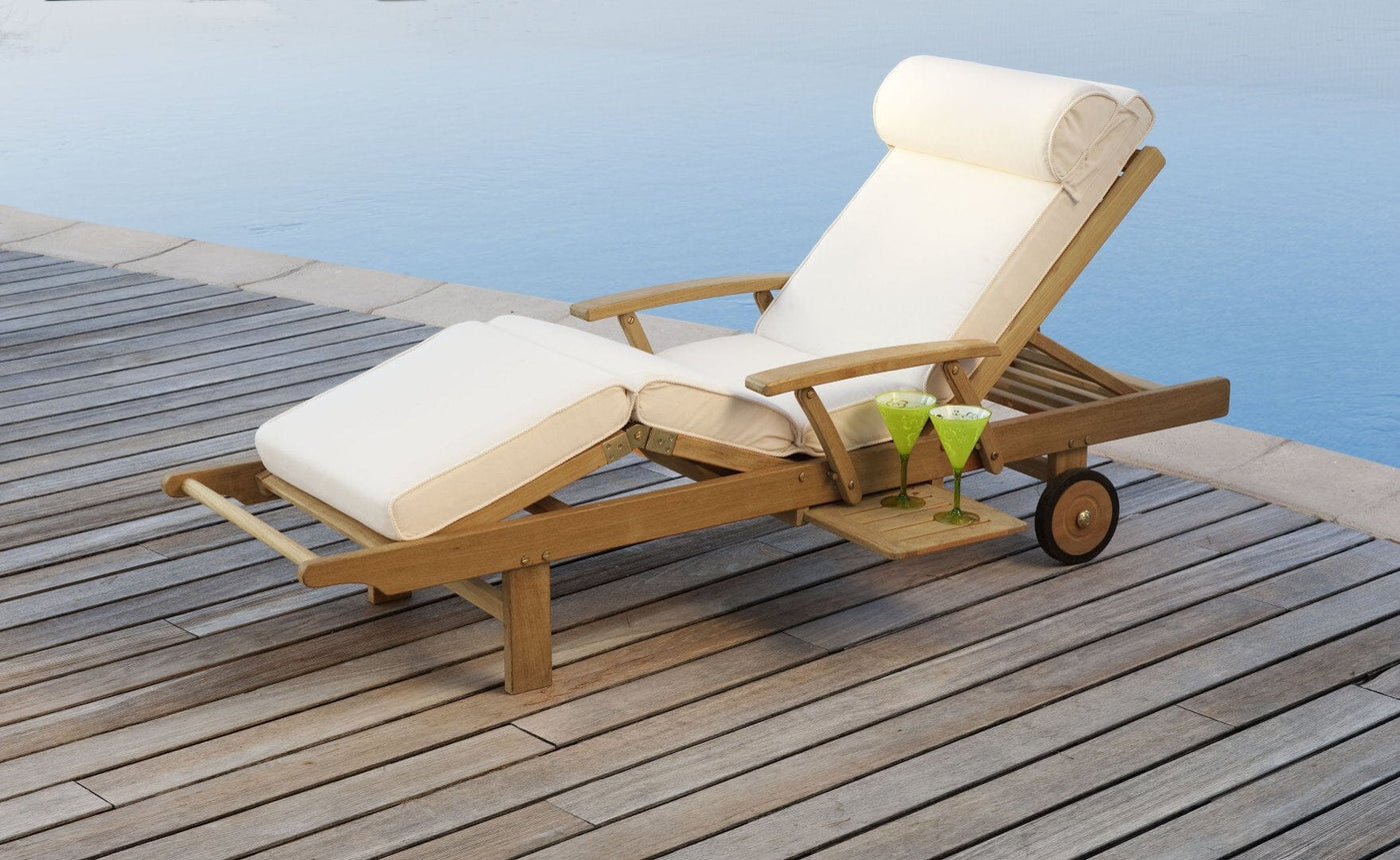 The AZUR sun lounger is a comfortable and well-equipped model: a very resistant batyline canvas, rear wheels for easy movement, an adjustable backrest for personalized comfort and a retractable shelf allowing you to keep all your personal belongings within reach.