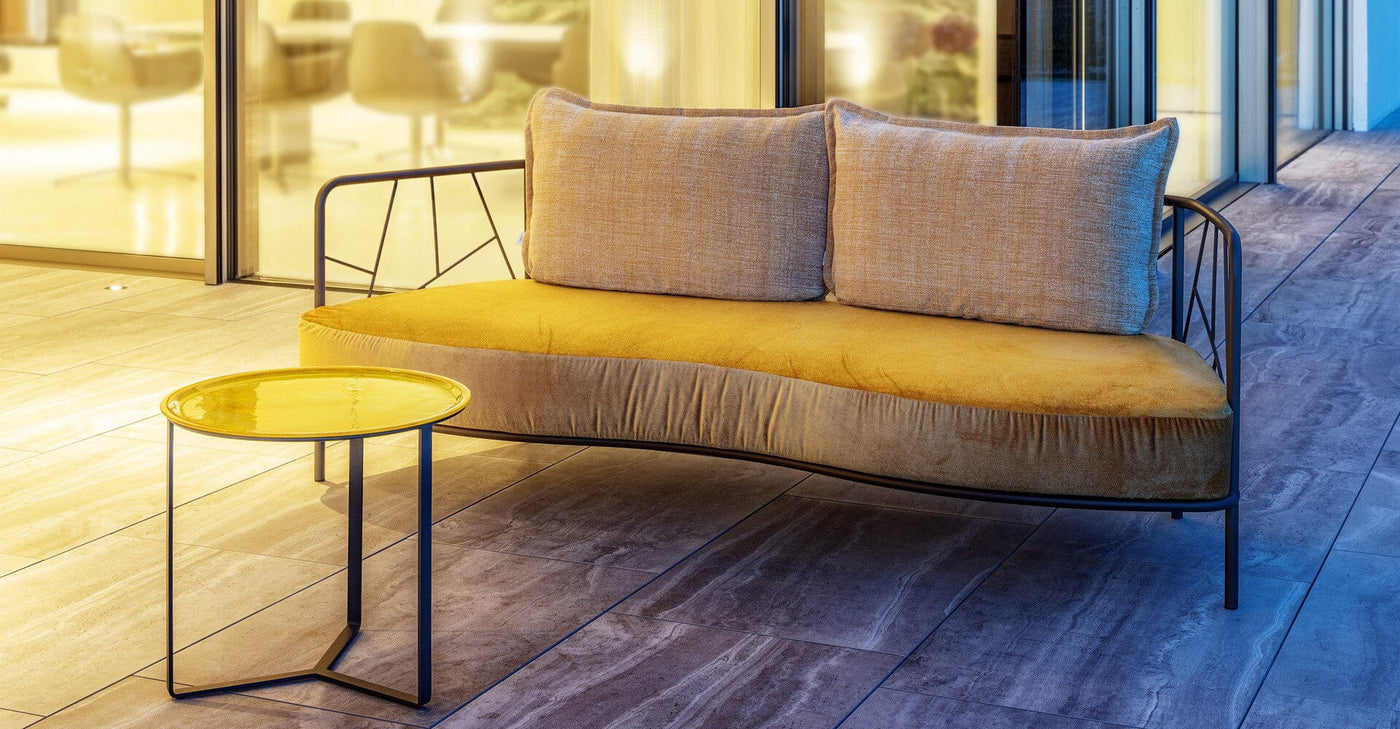 The Trios side tables harmoniously combine design, elegance and functionality. These tables are made of hand-made glass tops, available in different colours. The careful production of the glass tops gives them a unique and attractive aesthetic and each one is one of a kind. The glass top brings a touch of sophistication and colour to the outdoor space.