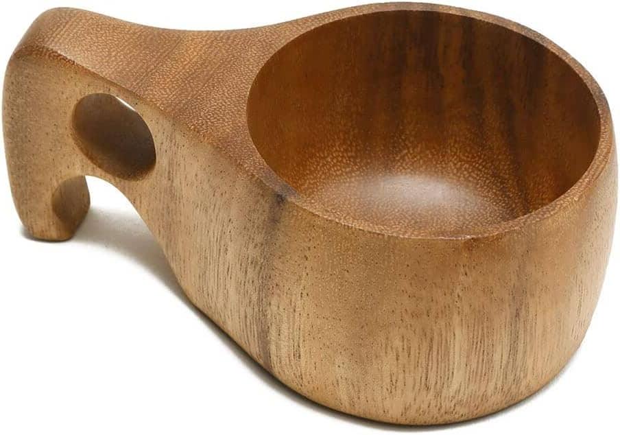 Store it, hang it, grab it: the Kuksa Raw Wood Mug is stylish, functional, and ultra-lightweight. Inspired by Nordic tradition and minimalist style, this version offers an improved design and unique aesthetic. Sustainably sourced acacia wood gives this reusable mug the look and feel of smooth hardwood, while the newly designed ergonomic handle ensures a secure grip on your precious contents. Ideal for everything from hot oatmeal to coffee/tea/cocktails to stews. Great for camping or adding a natural element to your kitchen collection.
