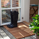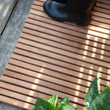 Made entirely of natural teak wood, this rectangular shower mat is ideal for use in showers or as a mat outside the bathtub. Also suitable for the balcony as a floor covering. Smooth, non-chipping surface grips feet to prevent slipping.