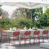 RONDA X collection . The Ronda X collection consists of a chair, an armchair and a stool. The structure is made of iron tube and the surface of the backrest is made of hot-dip galvanized expanded metal. Nylon insoles. The sheet is made soft by the shape, which follows the curves of the body, and by the design which recalls a fabric. The armchair uses modern technologies like the double curvature, which, while maintaining the simplicity of the simple tubular for the legs and the armrests, allows to amplify the comfort with the armrest which extends to the body to support the elbow. The shape of the armrest recalls the curves of the backrest and the inclination towards the back follows the ergonomics of the user. Thanks to the interplay of parallel tubes and curves between the shell and the armrest, the enveloping character that distinguishes the armchair emerges. Pre-treatment, cataphoresis, thermosetting powder finish.