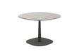 Enjoy is a line of tables available in 5 heights, with ceramic tops of different sizes and colors. The table tops have rounded edges and soft lines and are supported by a metal structure that creates the base of the table welded directly to the central conical post.
