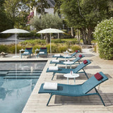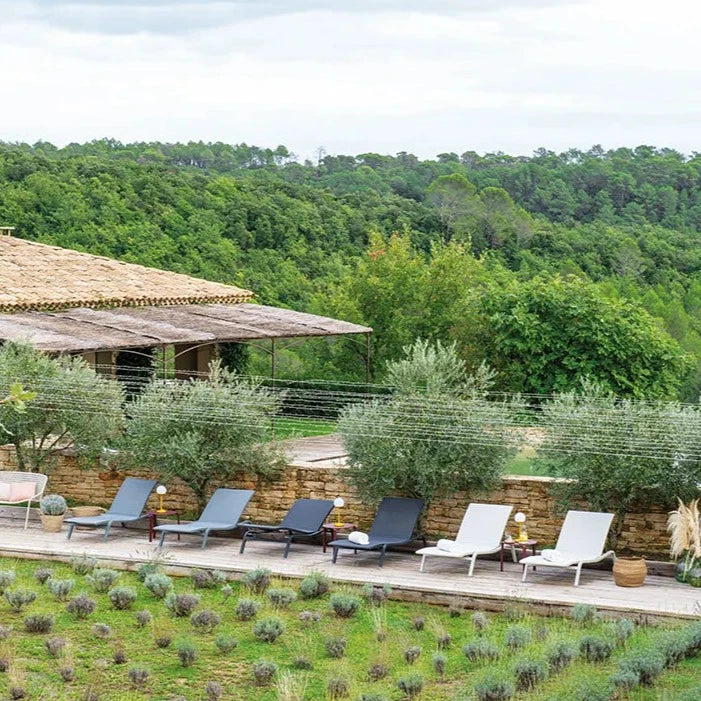 Sobriety, lightness and comfort are the words that best sum up this designer sun lounger . Equipped with a covering in Outdoor Technical Canvas and an adjustable backrest, it can be accompanied by a headrest for even more well-being.