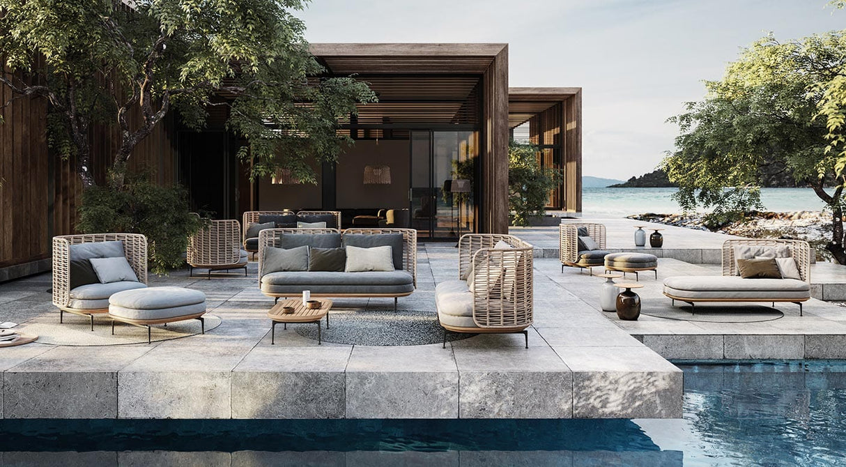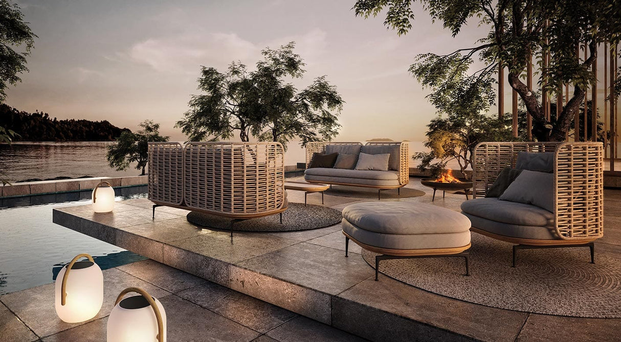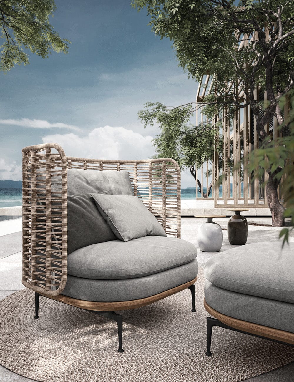 Gloster’s MISTRAL Collection. Curl up in a soft landscape of padding and cushions separated and protected by impeccably handcrafted enveloping screens. With a perfect balance of subtle and sophisticated details, MISTRAL is designed to complement rather than control the surrounding aesthetic. With its pleasing chorus of symmetrical curves and a palette of natural and neutral colours, fine lines and delicate details abound in this collection.