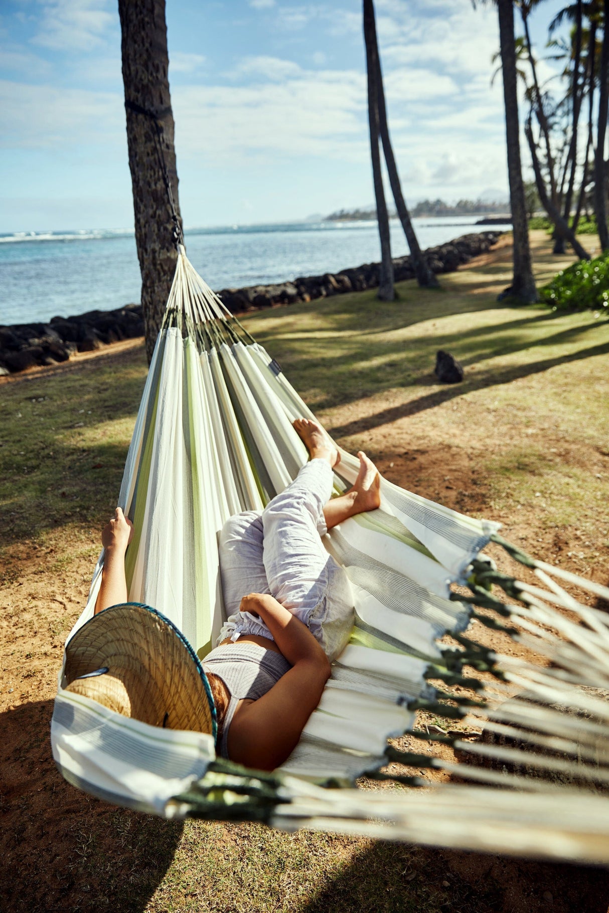 With its generous size, this classic hammock can accommodate the whole family. The Kingsize size offers the best possible comfort with its 180 cm wide canvas.