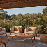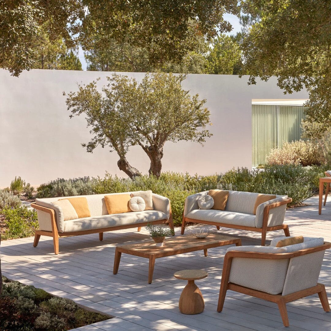 Clean lines and pronounced curves give Sunrise an undeniably contemporary stance. Available in warm brushed teak or bold scuro teak, Sunrise offers a comprehensive range of living and dining furniture. Dark teak details and a backrest upholstered in fabric or batyline® complete the design of this robust yet elegant collection. From the country estate to the avant-garde hotel to the futuristic yacht: Sunrise is a mature collection that will bring an incomparable touch to any environment.