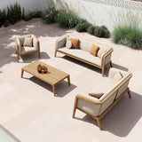 Teak wood (Tectona Grandis) Origin Indonesia. Teak wood changes appearance outdoors. Maintain to keep its original color or allow it to patina and gray naturally.