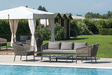 Whether the invitation to relax, barbecue or party can turn into a successful celebration also depends to a large extent on the right outdoor furniture! With the Bergen chair we guarantee that every occasion will be a success! The wide textile straps have been cleverly attached to the anthracite-coloured aluminium frame and create the unusual look of this seating group. Individual design wishes can be realised with the individual modules. Elements can be freely positioned and added as desired.