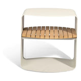 The Mindo 109 side table is based on an elegant, organically shaped aluminum frame with a practical teak shelf. The open design and weight of the sturdy aluminum frame provide a stable table that is still easy to move.