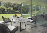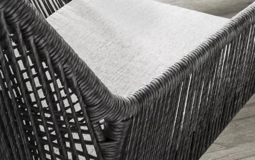 Superb anthracite or powder-coated aluminum finish. Twisted weave available in 4 colors. Polypropylene seat cushion.