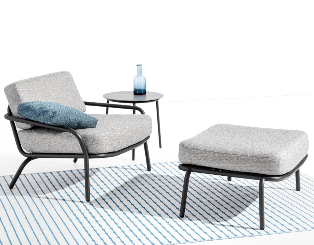 Club lounge chair, lacquered stainless steel, Cushions included with DRYFEEL® foam