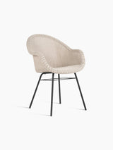 A delicately woven chair with a warm teak or sleek steel base for a contemporary mix of materials. Available colors: Black, Mocha, Old Lace.