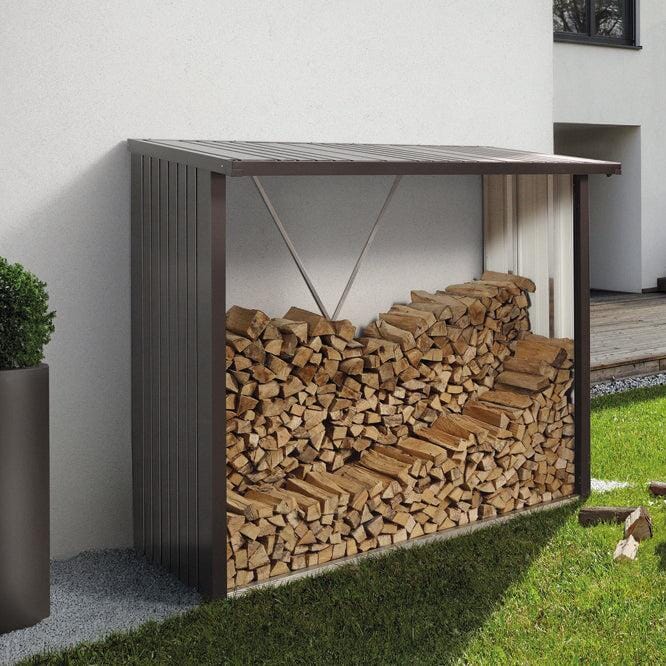 Stockage de bois de chauffage disponible en 2 couleurs (Argent métallique, Gris foncé métallique) et 2 tailles différentes (150, 230).