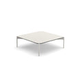 Table basse : Carrée et basse, cette table se décline en quatre revêtements en poudre et un choix de dessus de table en stratifié haute pression ou en composite minéral. Mélangez et assortissez avec les tables IZON.