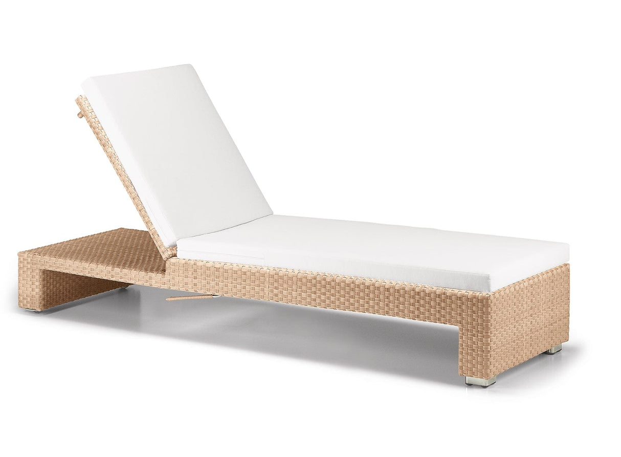Dedon Lounge Chaise longue, avec roues, avec réglage du dossier en continu par piston, coussin non inclus.