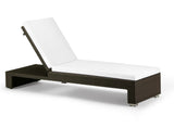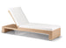 Chaise de plage : Adhérant à la forme épurée et rectiligne de la collection, la chaise de plage LOUNGE comporte de coussins confortables, un dossier réglable et des roues arrière pour une mobilité facile.