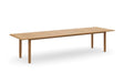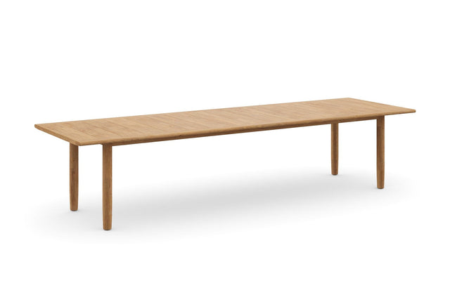 Table repas: Près de 3,4 m de long mais toujours légère, le dessus de cette table en teck haut de gamme est soutenue par une construction spéciale en dessous. Le dessus est arrondi des deux côtés tandis que les extrémités présentent des bords plats.
