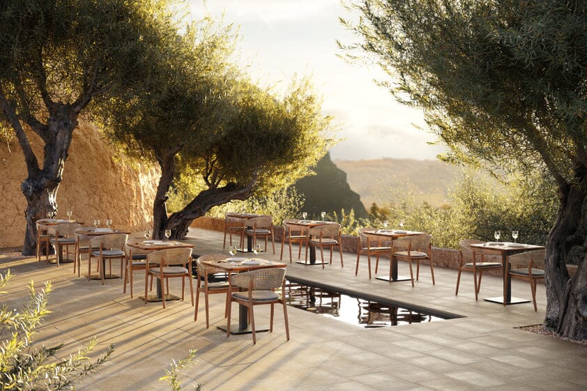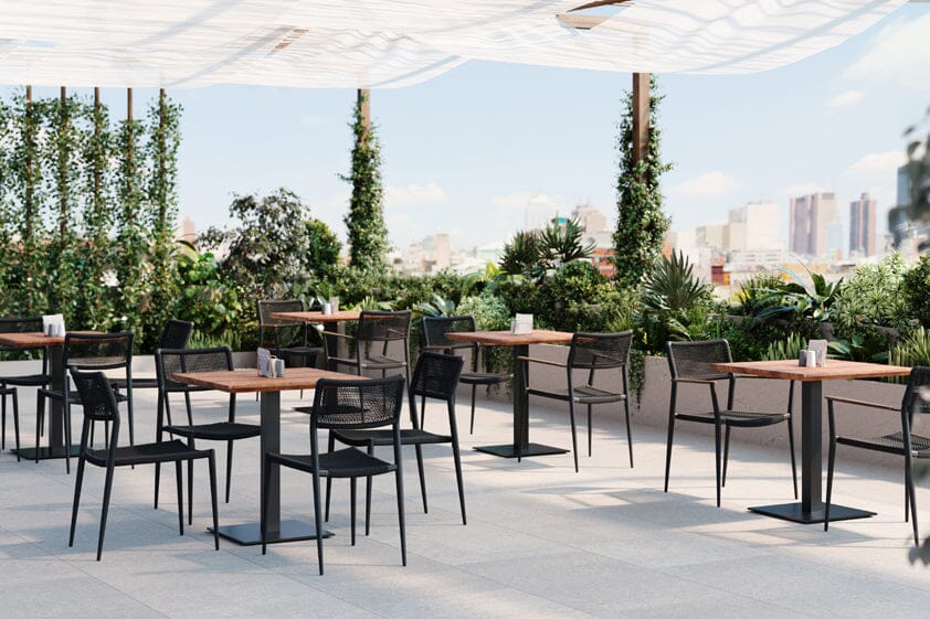 Collection ALEXA. Nos tables bistrot Alexa ont tout en réserve pour créer un plaisir extérieur parfait. La collection offre une variété bienvenue à n'importe quel environnement. Le cadre en aluminium d'Alexa en coloris lava et blanc se combine à merveille avec le plateau en teck naturel. Les plateaux Trespa® sont une autre option pour vos projets exigeants, garantissant un entretien facile et une durabilité parfaite.