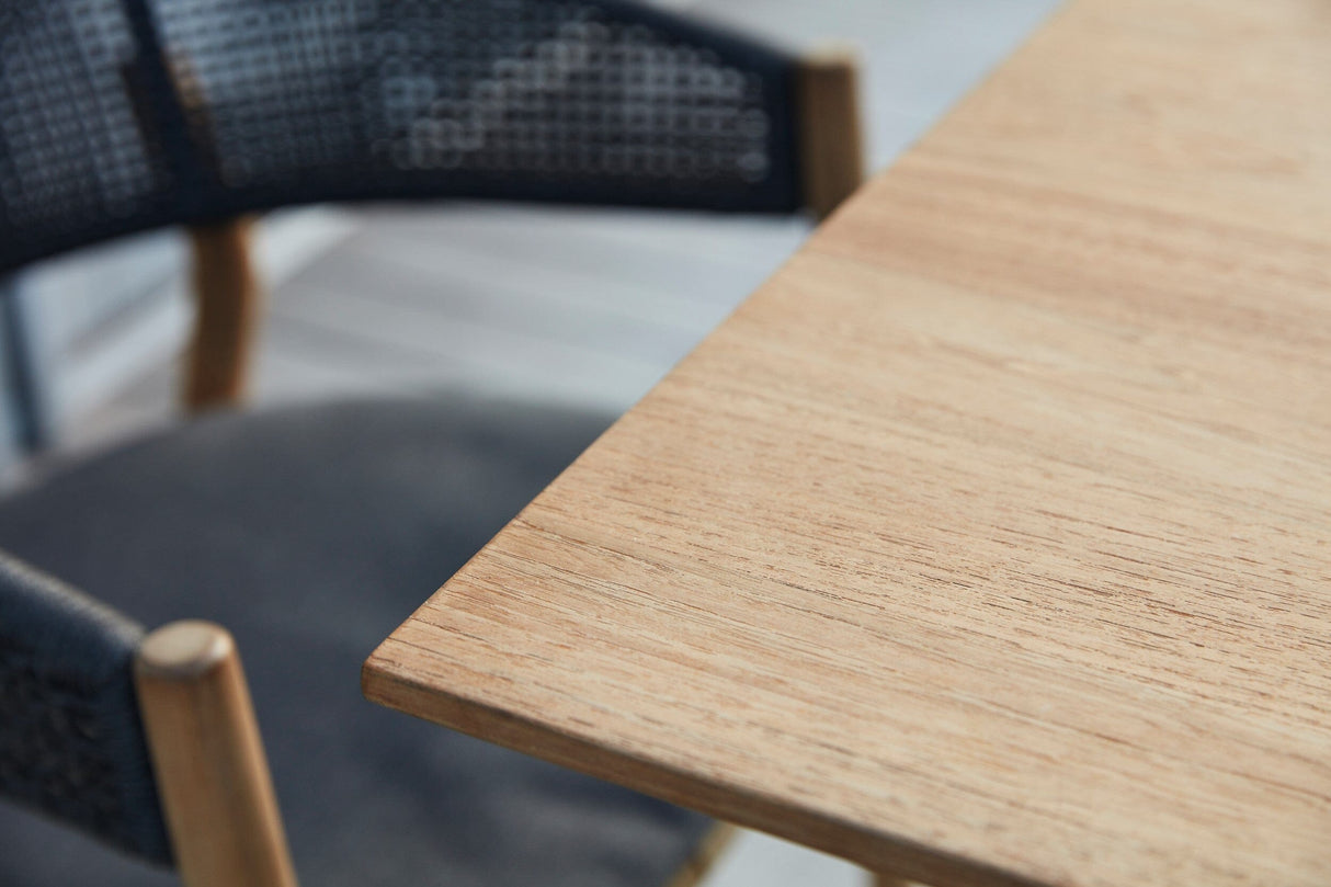 Bois de teck (Tectona Grandis) Provenance Indonésie. Le bois de teck change d'aspect à l'extérieur. A entretenir pour garder sa teinte d'origine ou à laisser se patiner et griser naturellement.