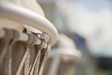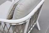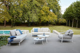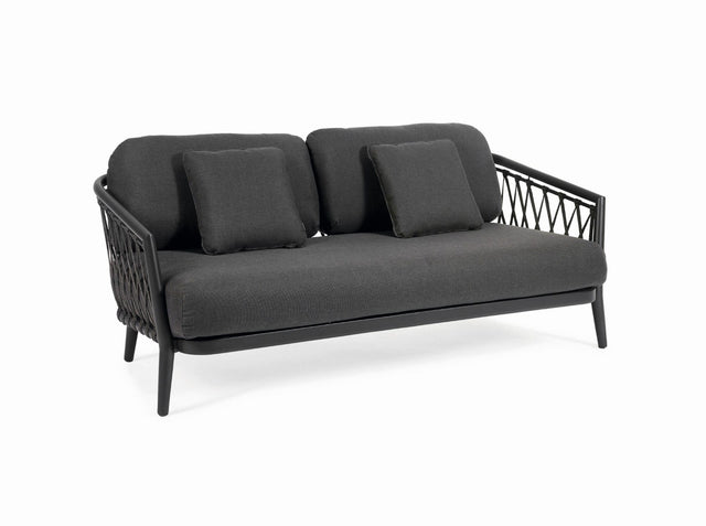 Collection DIAMOND. Le diamant est simplement gracieux de toutes les manières possibles. Et grâce à sa modularité, une collection de mobilier d'extérieur très polyvalente. Connectez, déconnectez, combinez et réorganisez à votre guise avec notre canapé 2 places disponible en blanc et en coloris lava, avec un set de coussins inclut. Le cadre en aluminium léger le rend non seulement facile à déplacer, mais il porte aussi la vocation première de la collection : le confort. Le motif bijou de la finition en corde fait de chaque meuble un véritable bijou.