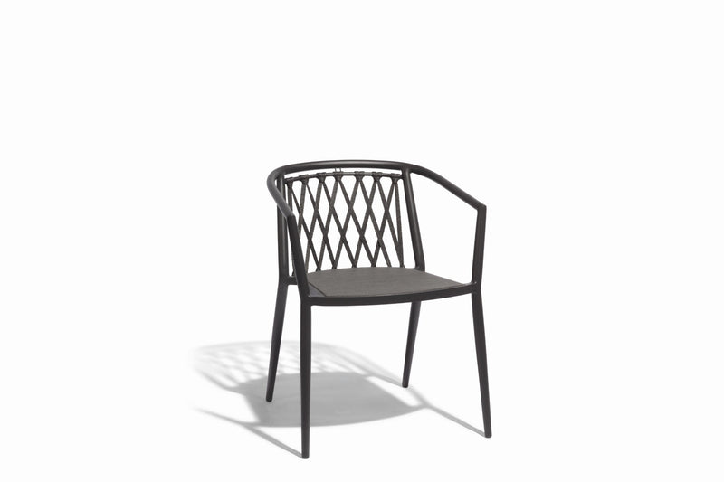 Collection DIAMOND. Le diamant est simplement gracieux de toutes les manières possibles. Et grâce à sa modularité, une collection de mobilier d'extérieur très polyvalente. Connectez, déconnectez, combinez et réorganisez à votre guise avec notre fauteuil de repas disponible en blanc et en coloris lava. Le cadre en aluminium léger le rend non seulement facile à déplacer, mais il porte aussi la vocation première de la collection : le confort. Le motif bijou de la finition en corde fait de chaque meuble un véritable bijou.