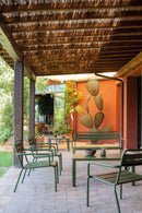 Pour l'extérieur. Version en acier. Coussins non inclus vendus en option. Un canapé complète la collection.