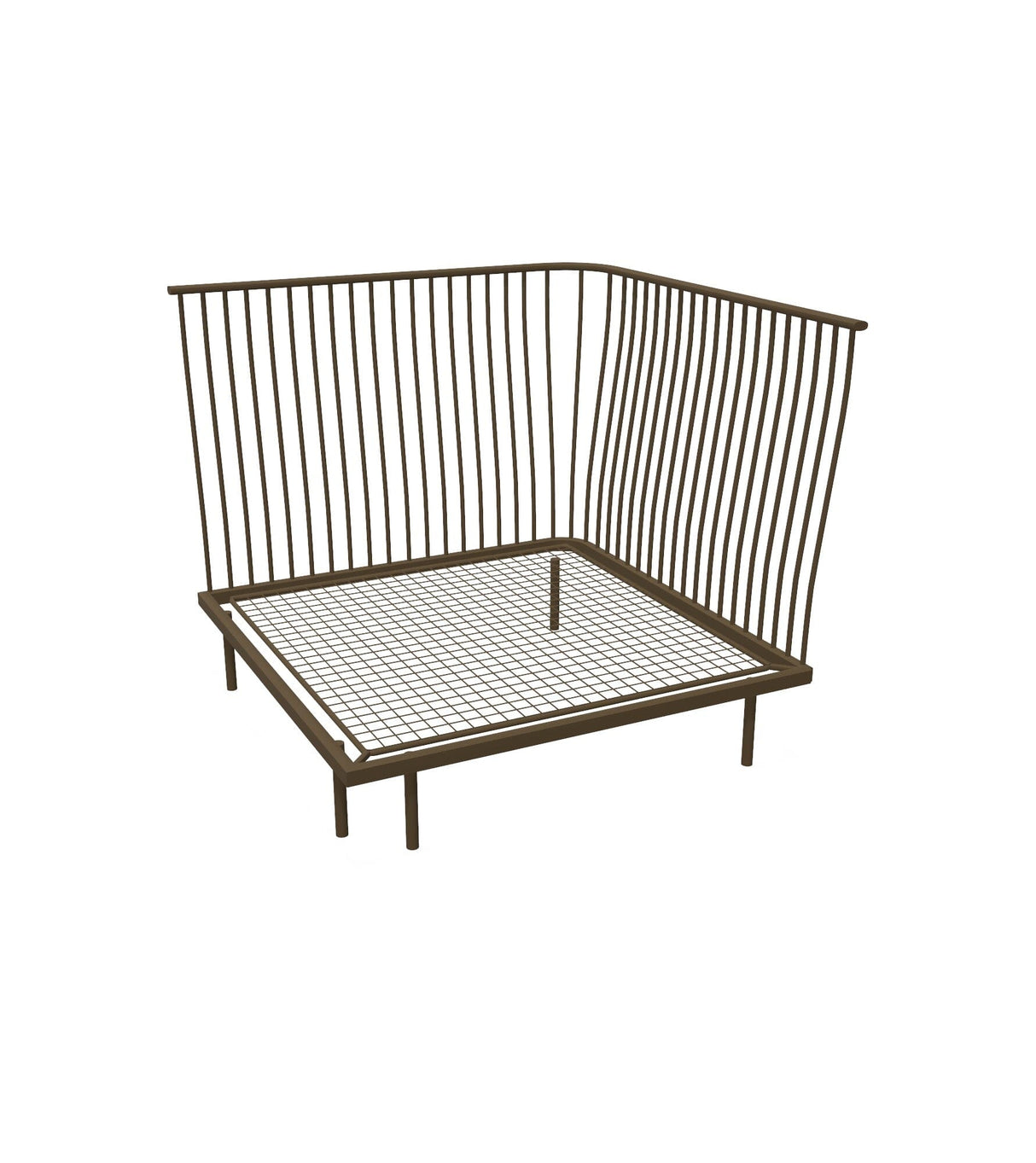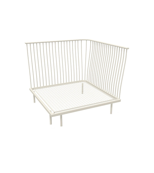 Collection CANNOLE. Le système d'assise Cannolè d'Anton Cristell et Emanuel Gargano a une structure entièrement soudée composée de tubes en acier galvanisés à l'intérieur et à l'extérieur. Siège composé d'une grille de tige galvanisée soudée sur un encadrement d'armature. Les pieds sont en acier tubulaire. Soudage MIG, pré-traitement de dégraissage et de cataphorèse et finition en poudre thermodurcissable polyester. La collection se compose de: canapé module d'angle, canapé module linéaire, pouf, fauteuil bas et table basse. Tous les coussins Cannolè sont faits de caoutchouc polyuréthane auquel est ajoutée une couche de résine de fibre de polyester, le tout emballé dans une taie d'oreiller interne en polyamide imperméable.
