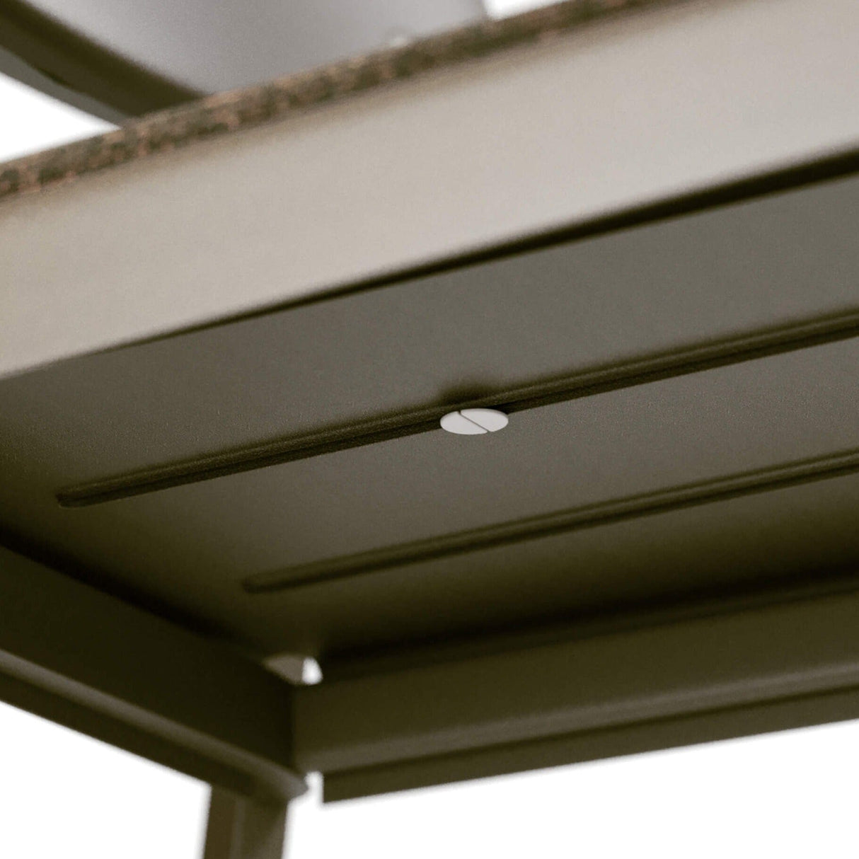 Collection Shine. La collection Shine d’Arik Levy est une collection aux lignes modernes et épurées, se prêtant aussi bien à une utilisation dans le Résidentiel qu’à une utilisation "Contract". Le mariage entre l’aluminium et le design franc et décidé transmet une sensation à la fois de légèreté et de confort essentiel. Fauteuils, chaises et chauffeuses, empilables et dotés d’accoudoirs en teck, sont disponibles aussi dans une intéressante combinaison entre structure en aluminium et assise en teck FSC 100%. Pour l’aménagement de zones repas et relax, la collection Shine comprend également des tables, des tables hautes et des tabourets, ces derniers proposés eux aussi dans la version alternative avec assise en teck. Le bain de soleil, le lit de repos et un canapé deux places viennent compléter la collection.