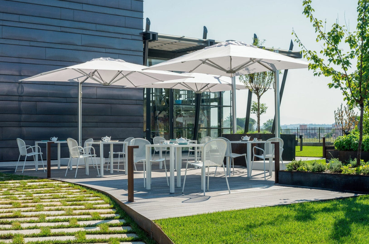 La collection Ronda X se compose d'une chaise, d'un fauteuil et d'un tabouret. La structure est en tube de fer et la surface du dossier en métal déployé galvanisé à chaud. Semelles intérieures en nylon. Le drap est rendu doux par la forme, qui suit les courbes du corps, et par le dessin qui rappelle un tissu. Le fauteuil utilise des technologies modernes comme la double courbure, qui, tout en conservant la simplicité du simple tubulaire pour les jambes et les accoudoirs, permet d'amplifier le confort avec l'accoudoir qui se prolonge jusqu'au corps pour soutenir le coude. La forme de l'accoudoir rappelle les courbes du dossier et l'inclinaison vers le dos suit l'ergonomie de l'utilisateur. Grâce au jeu des tubes parallèles et des courbes entre la coque et l'accoudoir, le caractère enveloppant qui distingue le fauteuil émerge. Prétraitement, cataphorèse, finition en poudre thermodurcissable.