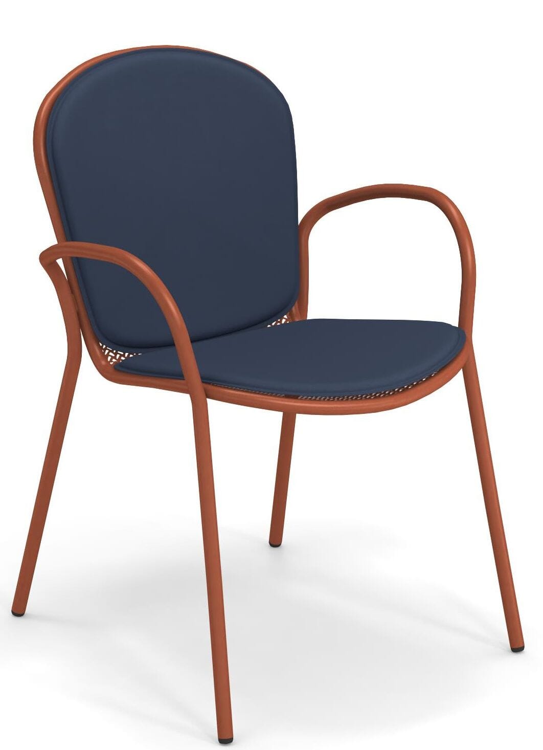 Collection Ronda X. La collection Ronda X se compose d'une chaise, d'un fauteuil et d'un tabouret. La structure est en tube de fer et la surface du dossier en métal déployé galvanisé à chaud. Semelles intérieures en nylon. Le drap est rendu doux par la forme, qui suit les courbes du corps, et par le dessin qui rappelle un tissu. Le fauteuil utilise des technologies modernes comme la double courbure, qui, tout en conservant la simplicité du simple tubulaire pour les jambes et les accoudoirs, permet d'amplifier le confort avec l'accoudoir qui se prolonge jusqu'au corps pour soutenir le coude. La forme de l'accoudoir rappelle les courbes du dossier et l'inclinaison vers le dos suit l'ergonomie de l'utilisateur. Grâce au jeu des tubes parallèles et des courbes entre la coque et l'accoudoir, le caractère enveloppant qui distingue le fauteuil émerge. Prétraitement, cataphorèse, finition en poudre thermodurcissable.