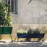 Composée d'un bac en aluminium posé sur une structure en acier, la jardinière longue, peut être garnie de plantes décoratives, aromatiques ou servir au rangement pour vos coussins et vos foutas.
