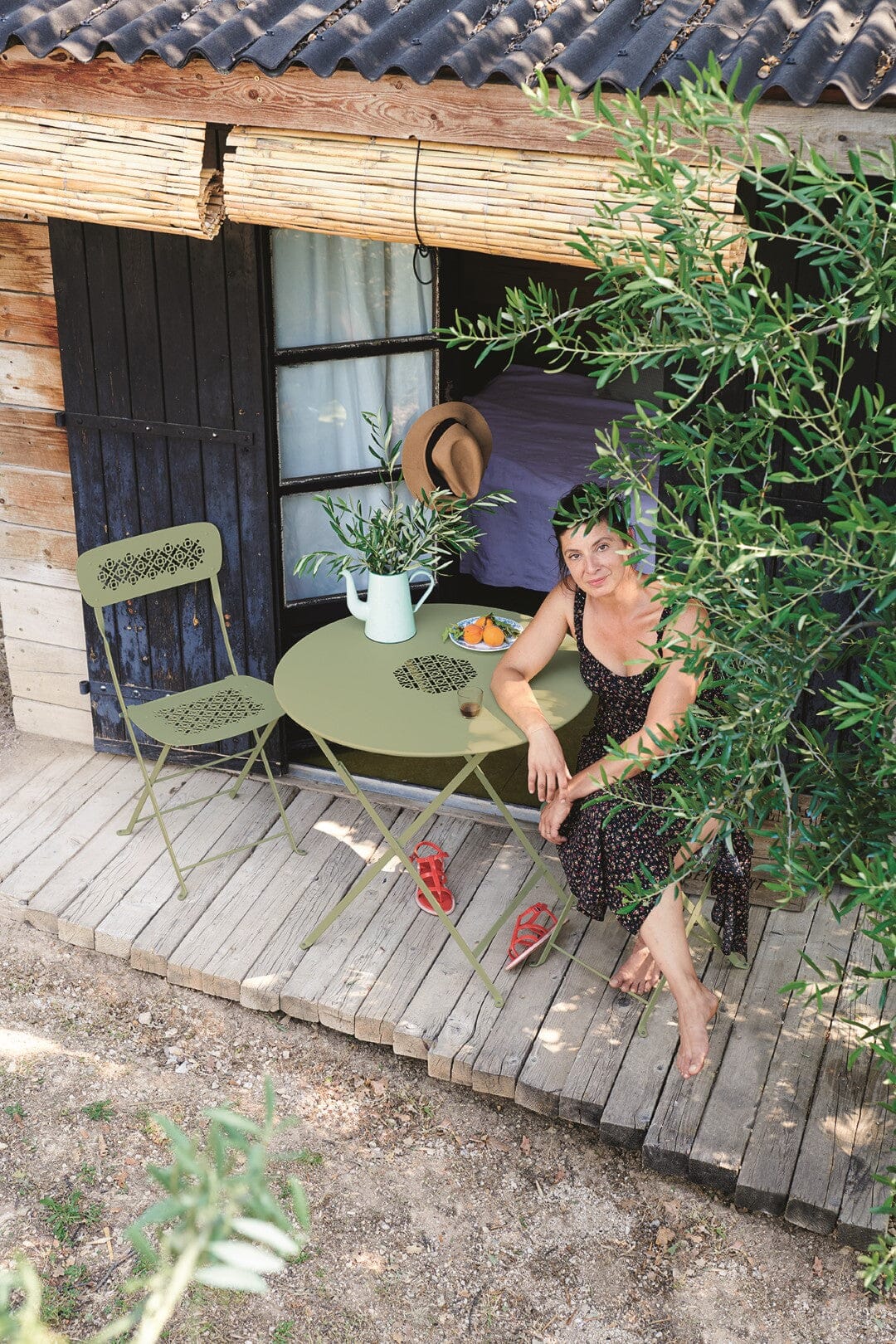 Cette version pliante de la table Lorette au motif emblématique est légère et robuste et facile à transporter.