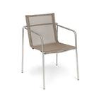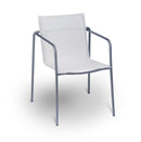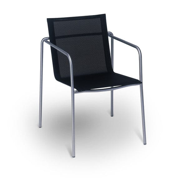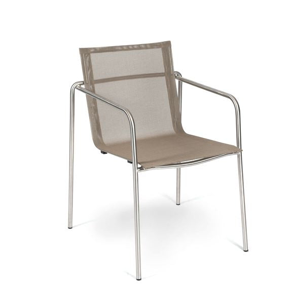 Le fauteuil empilable Taku aux lignes claires maintes fois primées est disponible en acier inoxydable poli à élasticité permanente. Les tables Taku ainsi que les transats empilables Taku sont parfaitement assortis.