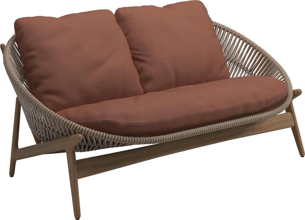 Collection Bora de Gloster. Les formes organiques naturelles sont un match évident avec l'espace extérieur. Une combinaison du tactile et de l'éthéré, Bora combine le savoir-faire raffiné d'un cadre en teck avec l'expression arrondie des cercles, étendu à un confort d'assise doux et invitant.