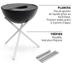 Bol à feu multifonctionnel ou barbecue polyvalent? Le Bowl 57 est tout ça à la fois. Vous souhaitez réchauffer l’atmosphère lors d’une soirée plus fraiche? Inclinez simplement la demi-sphère dans la direction voulue pour profiter d’une agréable chaleur! C’est l’heure d’un barbecue en petit ou plus grand comité? Positionnez pour cela votre Bowl 57 à l’horizontale et utilisez la grille, la plancha ou les deux pour gâter vos invités avec une variété de spécialités dont vous avez le secret!