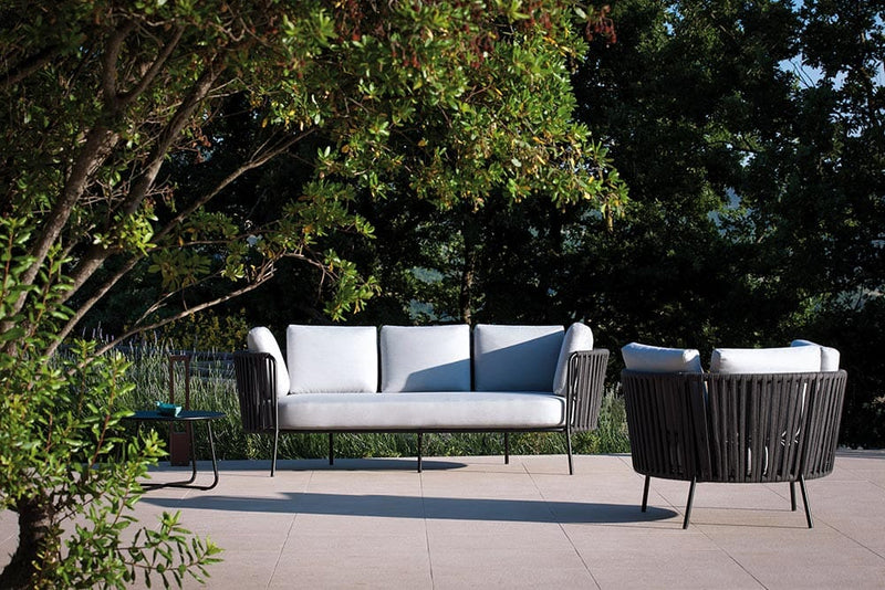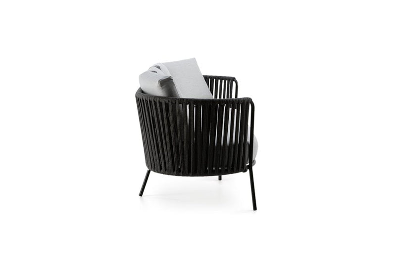 Le cordage du Lounge Granada est doté de la nouvelle corde en fibre de polyoléfine italienne brevetée, qui possède des propriétés optimales pour une utilisation en extérieur. Le matériau est résistant aux champignons, aux bactéries, à la lumière du soleil, à l'humidité, au chlore et aux taches de nourriture. Il est également entièrement recyclable.