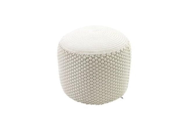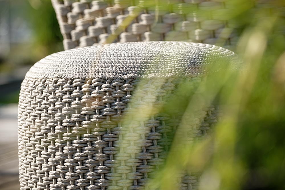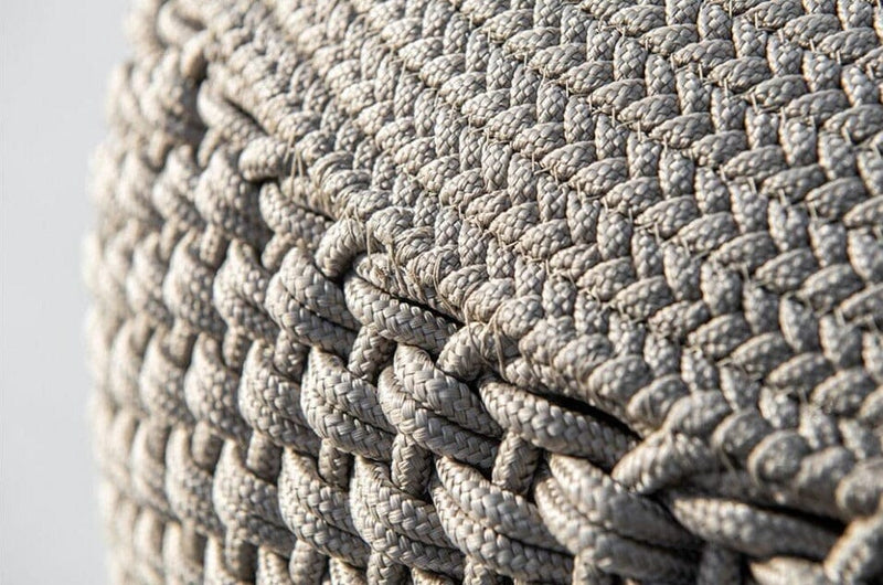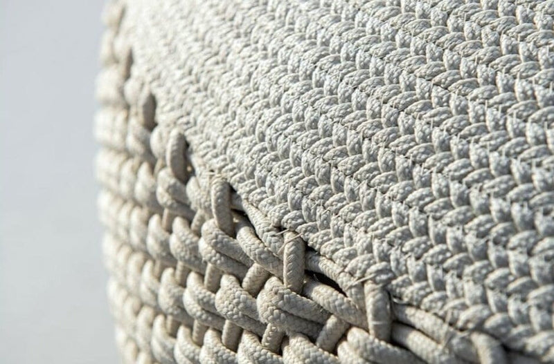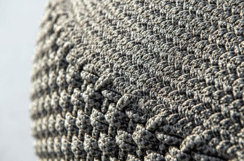 Utilisez le pouf comme siège supplémentaire ou simplement pour poser vos pieds. Une corde en fibre d'oléfine de haute qualité et résistante aux intempéries (polypropylène) d'environ 6 mm a été utilisée pour ce pouf d'extérieur. L'intérieur se compose d'un tissu adapté à une utilisation en extérieur avec des billes de polystyrène comme matériau de remplissage. Ces balles sont perméables à l'eau et peuvent donc résister à la pluie et à d'autres conditions météorologiques. En hiver, nous recommandons un stockage dans des zones sèches et protégées.