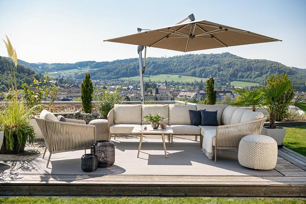 PALERMO peut être combiné de manière optimale avec d'autres poufs ou tapis d'extérieur et s'intègre dans chaque style de jardin avec ses couleurs tendance et sa forme ronde.
