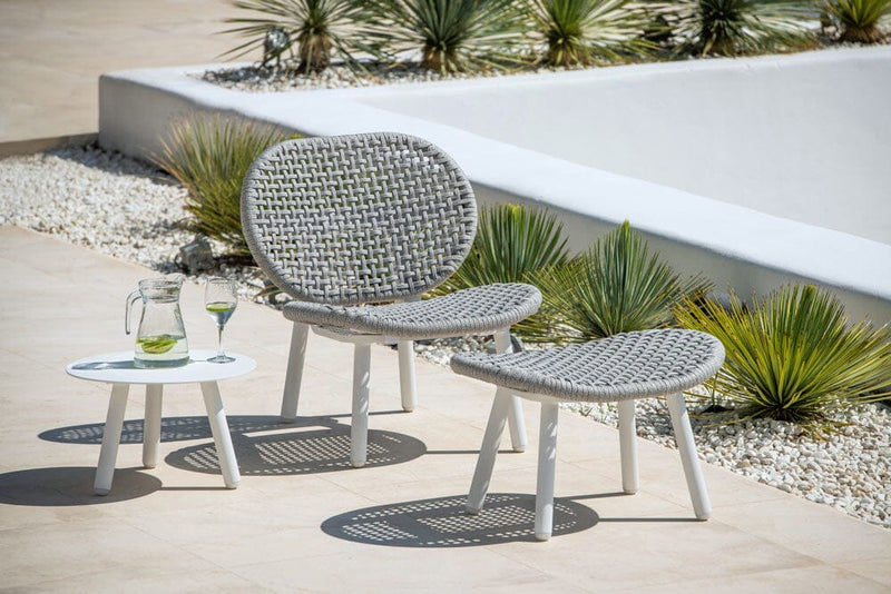 Un salon de jardin extrêmement confortable même sans coussins et qui se distingue par sa légèreté et qui est également résistant aux intempéries et facile d'entretien. Le cadre est en aluminium thermolaqué combiné à un cordon tressé en polyoléfine de haute qualité. Vous avez le choix entre deux combinaisons de couleurs tendance différentes : aluminium en blanc avec cordon tressé gris clair ou aluminium et cordon tressé en anthracite uni.