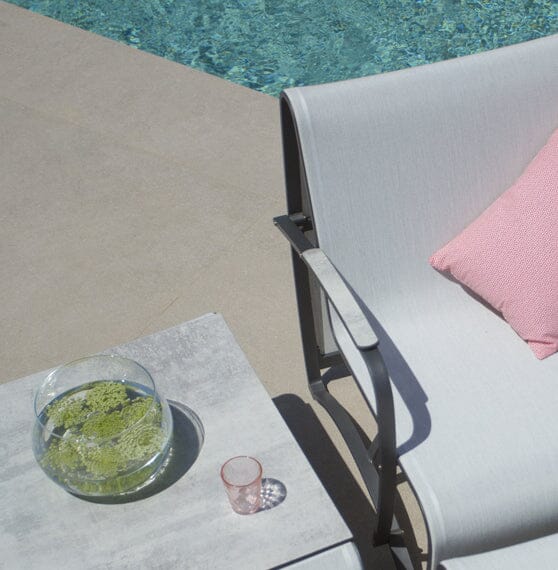 Jeu d'accoudoirs Jet Stream en aluminium gris espace avec insert HPL céramique grise. Jeux d'accoudoir pour module JETSTREAM, permettant de créer un fauteuil, un canapé ou de "fermer" d'un accoudoir de plus grande composition.