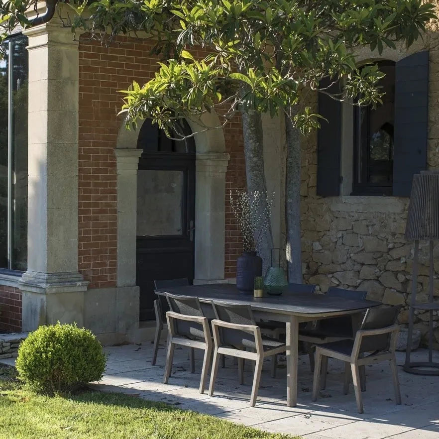 Bois de teck (Tectona Grandis) Provenance Indonésie. Le bois de teck change d'aspect à l'extérieur. A entretenir pour garder sa teinte d'origine ou à laisser se patiner et griser naturellement.