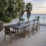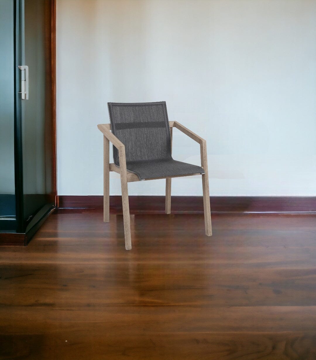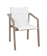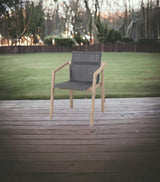 Fauteuil empilable Skaal en teck stabilisé Duratek et toile Batyline Eden chiné.