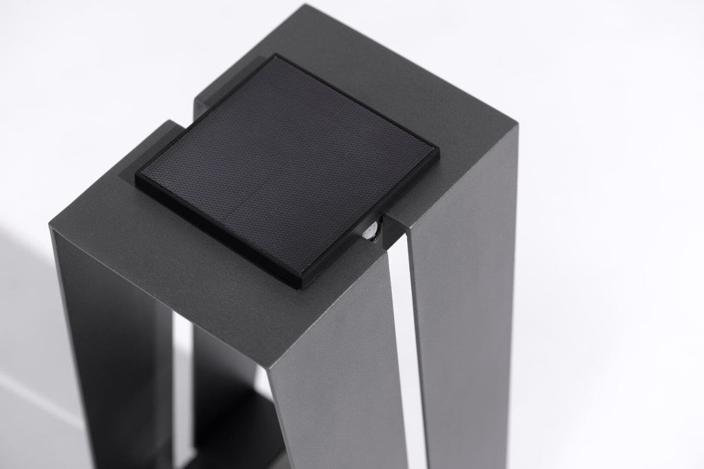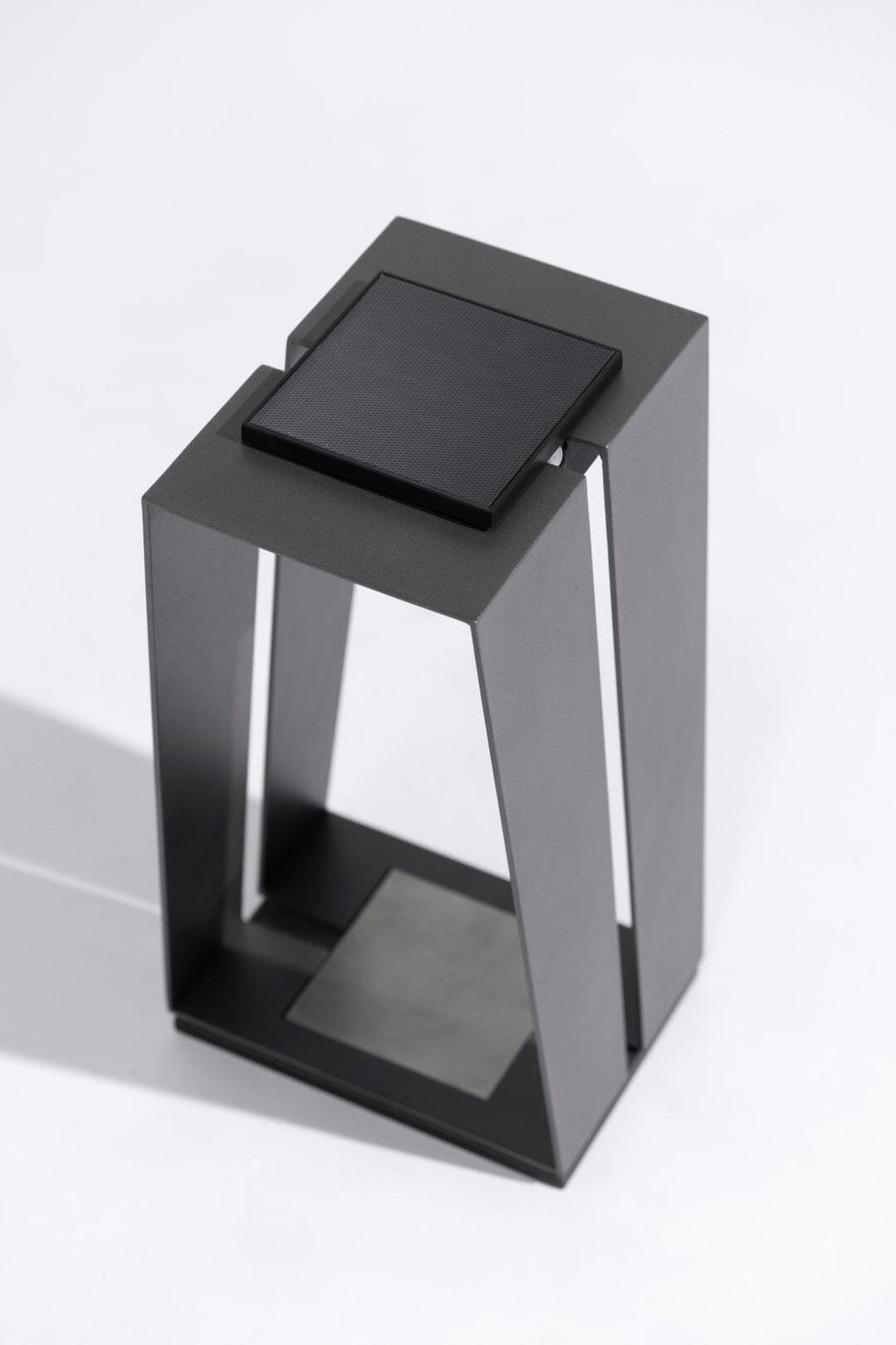Lanterne solaire et rechargeable 500 lumens Skaal H40cm en aluminium gris espace. Idéalement posée sur une terrasse, en bordure d’une allée, au bord d’une piscine, fixe ou nomade, elle éclairera votre jardin avec beaucoup de style et de charme. A sa base sa lumière est réfléchie pour renvoyer encore plus de luminosité. Equipée du module solaire et rechargeable USB, 500 lumens, des plus puissants et fiables du marché, amovible, combinant un panneau solaire à haut rendement, un port micro USB pour recharge secteur, un détecteur de présence (déconnectable), batteries lithium et 10 LED dernière génération, elle diffuse une lumière chaude, puissante, d’intensité réglable jusqu’à 500 lumens pendant 5 à 200 heures - Elle se recharge à l’énergie solaire, à la lumière du jour, ou via son port USB (câble fourni).