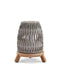L'abat-jour tressé de forme organique est entouré d’une base en bois sculpté. En utilisant non pas un, mais deux matériaux, le designer a développé une approche à la fois unique et moderne de techniques de tissage traditionnelles pour concevoir des produits esthétiques qui sauront vous séduire pour illuminer vos soirées d'été.