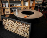 Tiger Fire 112 Island Black Ø112cm Foyer Brasero avec stockage bois H: 103cm.