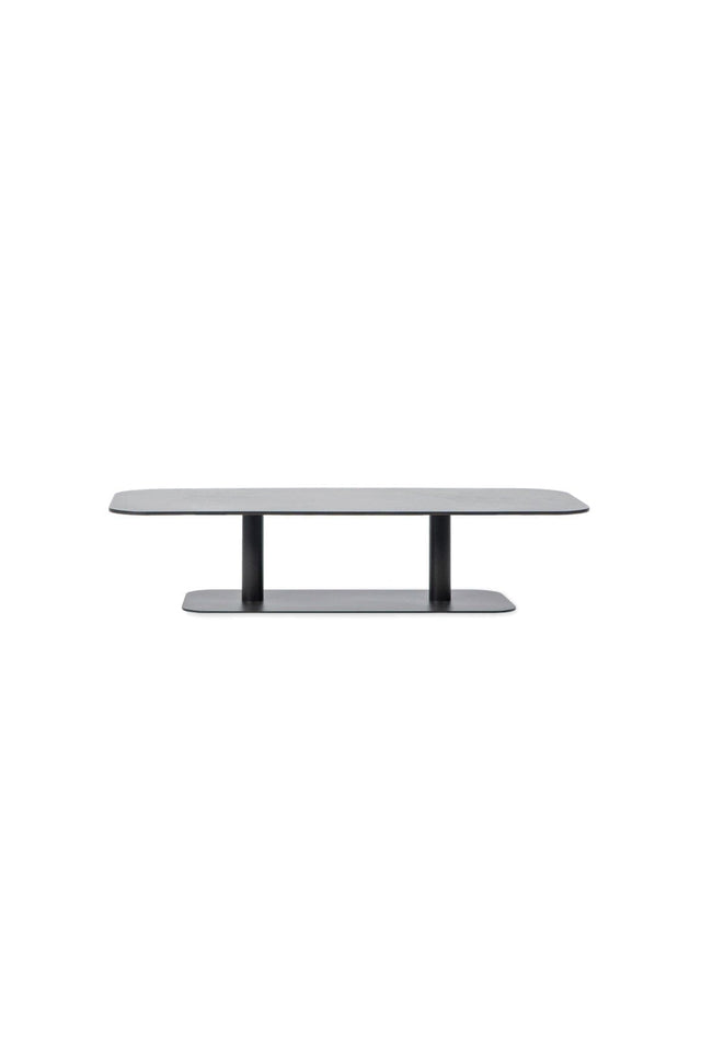 La table basse Kodo est une table basse pratique nécessitant peu d'entretien avec un beau plateau en céramique ou aluminium et une base en aluminium.